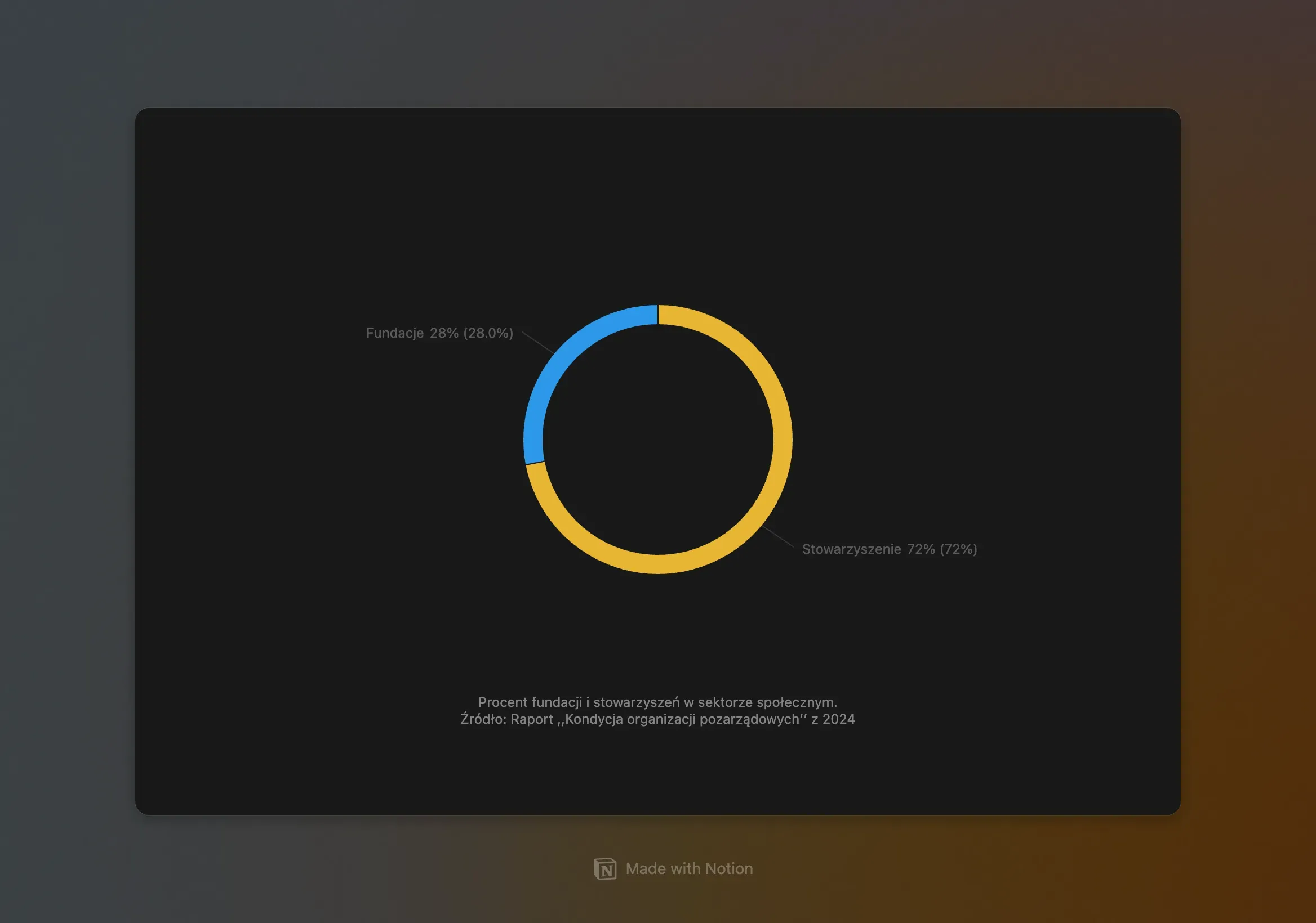 - 72% organizacji pozarządowych to stowarzyszenia, a 28% – fundacje.